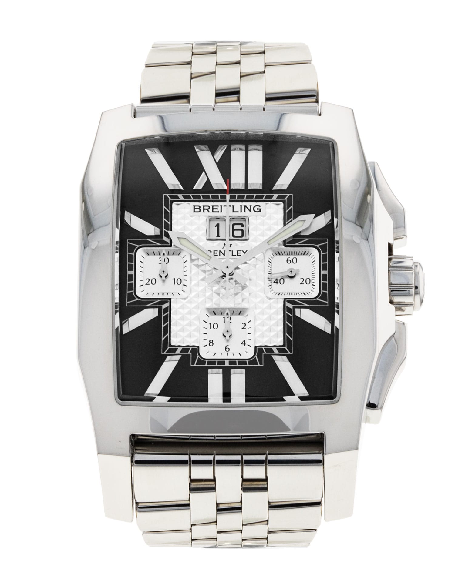 This Breitling Bentley Flying B Chronograph A44365 has a black roman numeral dial and a bracelet strap. This Breitling has undergone a thorough inspection of water resistance, accuracy, functionality and condition to determine the level of reconditioning required to meet our strict standards. It has also been referenced against technical documents and manufacturer records where available to ensure authenticity and a clean history. All our watches have a 24-month warranty for your peace of mind.