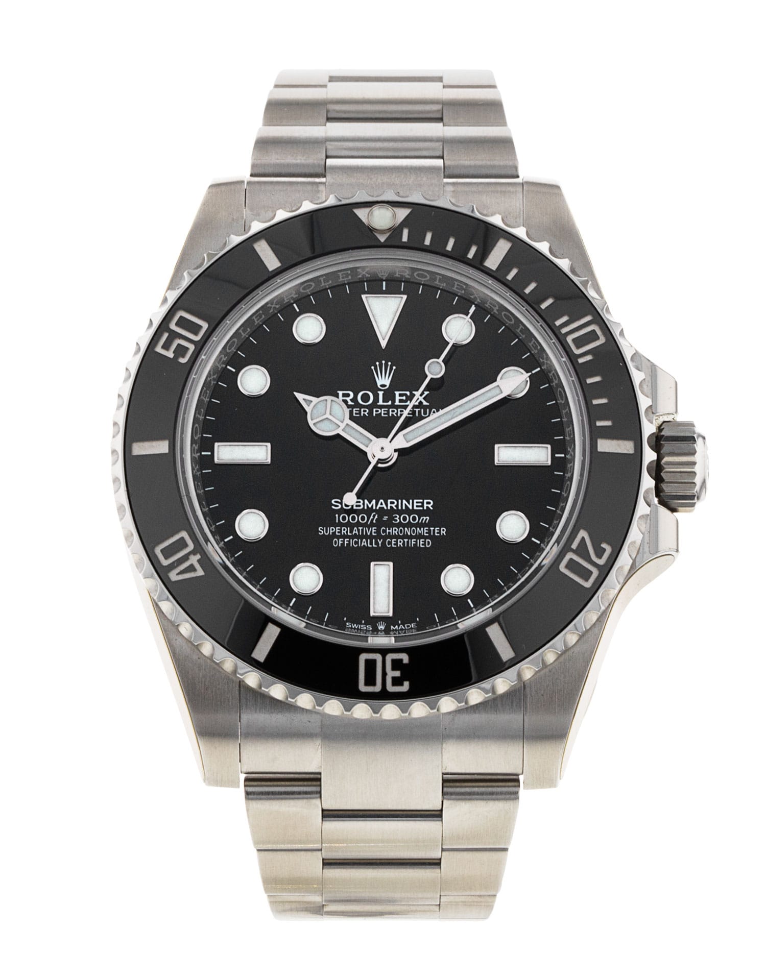This Rolex Submariner 124060 has a black dial and a bracelet strap. This Rolex has undergone a thorough inspection of water resistance, accuracy, functionality and condition to determine the level of reconditioning required to meet our strict standards. It has also been referenced against technical documents and manufacturer records where available to ensure authenticity and a clean history. Our watches have a 24-month warranty for your peace of mind, in conjunction with any remaining manufacturer’s warranty from new or from service. To maintain the manufacturer’s warranty on this watch, it has not been polished in our service centre.