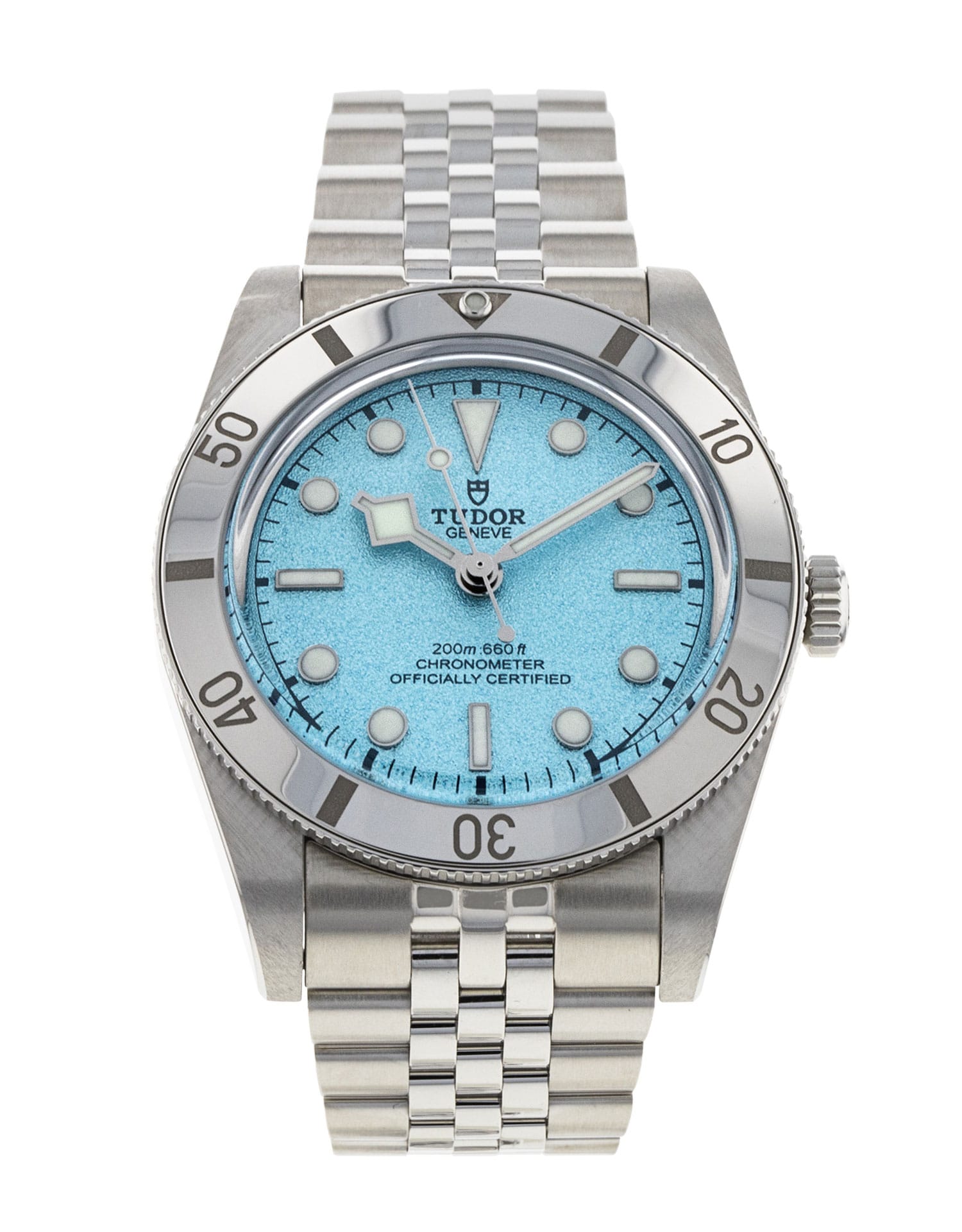 This Tudor Black Bay 54 M79000-0001 has a blue lagoon dial and a bracelet strap. This Tudor has undergone a thorough inspection of water resistance, accuracy, functionality and condition to determine the level of reconditioning required to meet our strict standards. It has also been referenced against technical documents and manufacturer records where available to ensure authenticity and a clean history. Our watches have a 24-month warranty for your peace of mind, in conjunction with any remaining manufacturer’s warranty from new or from service. To maintain the manufacturer’s warranty on this watch, it has not been polished in our service centre.
